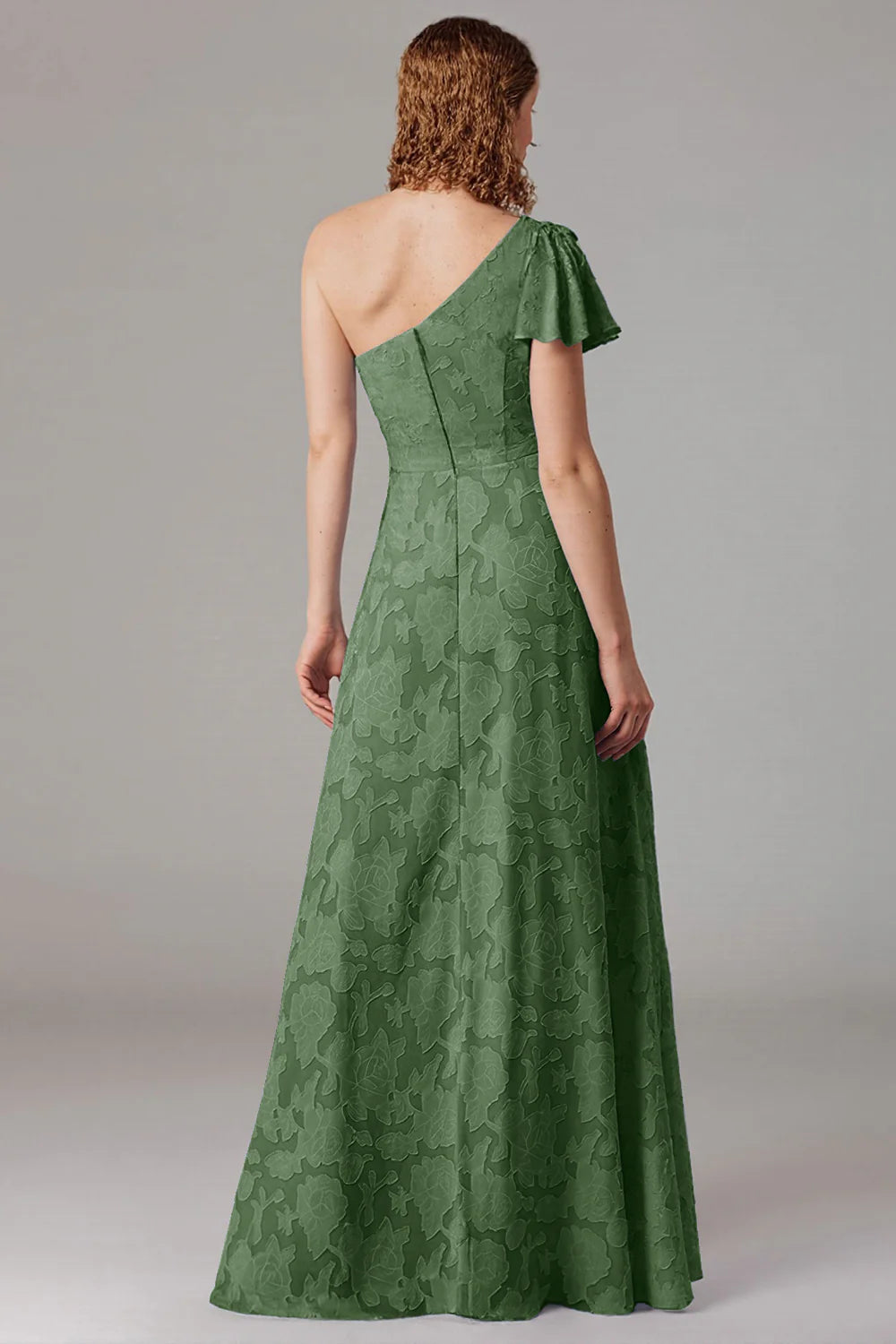 A-line shoulder cinched waist side slit dress - Sage / US 2 / UK 6 / EU 32
