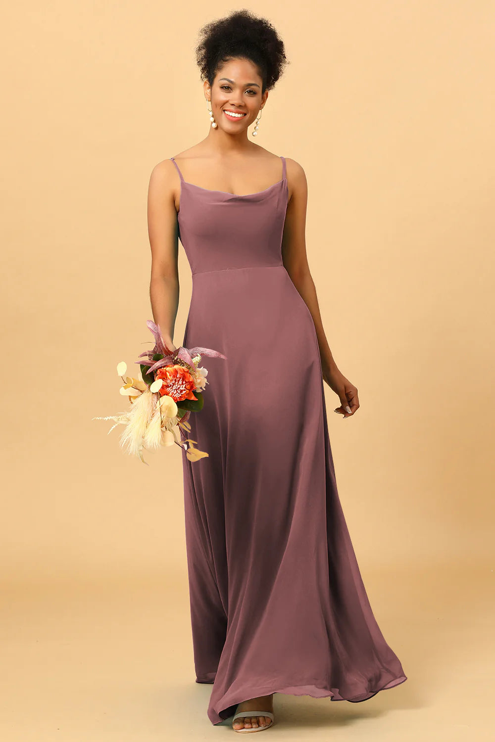 A Line Spaghetti Straps Floor-Length Chiffon Bridesmaid Dress