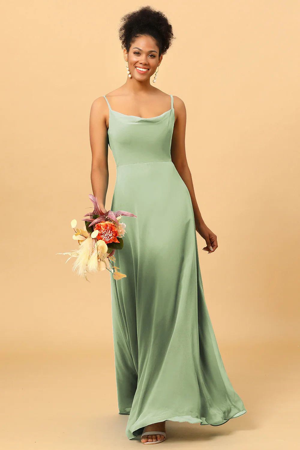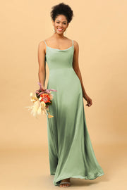 A Line Spaghetti Straps Floor-Length Chiffon Bridesmaid Dress - Dusty Sage / US 2 / UK 6 / EU 32