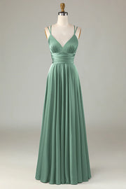 A Line Spaghetti Straps Floor-Length Satin Bridesmaid Dress - Eucalyptus / US 2 / UK 6 / EU 32