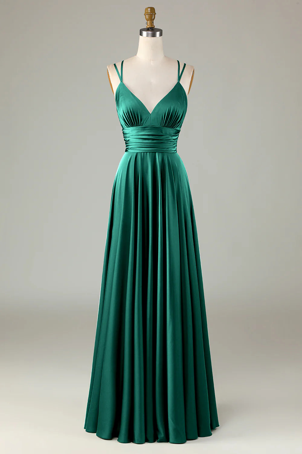 A Line Spaghetti Straps Floor-Length Satin Bridesmaid Dress