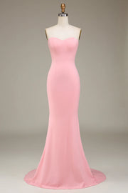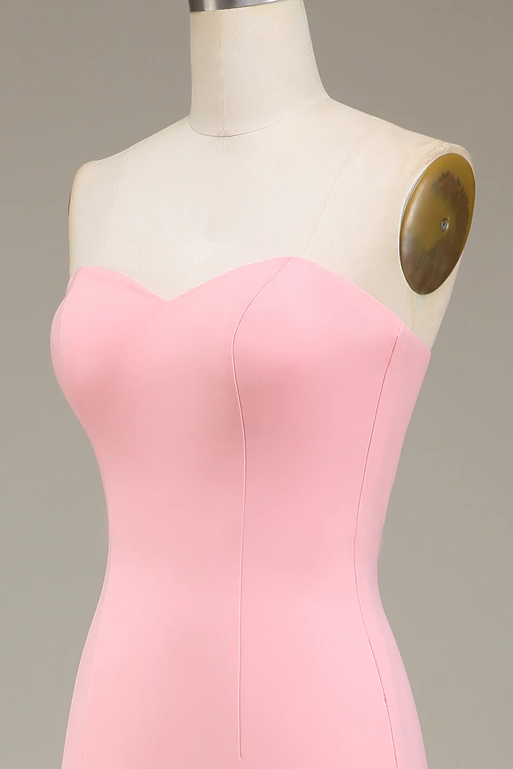 Blush Pink Mermaid Sweetheart Satin Long Bridesmaid Dress