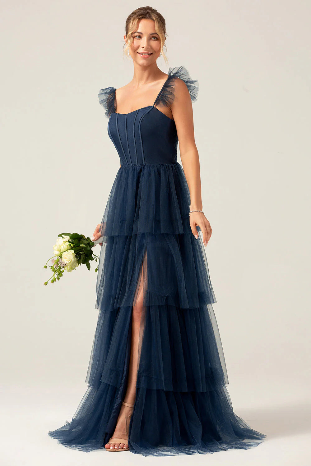 Eucalyptus A Line Spaghetti Straps Floor Length Tulle Bridesmaid Dress