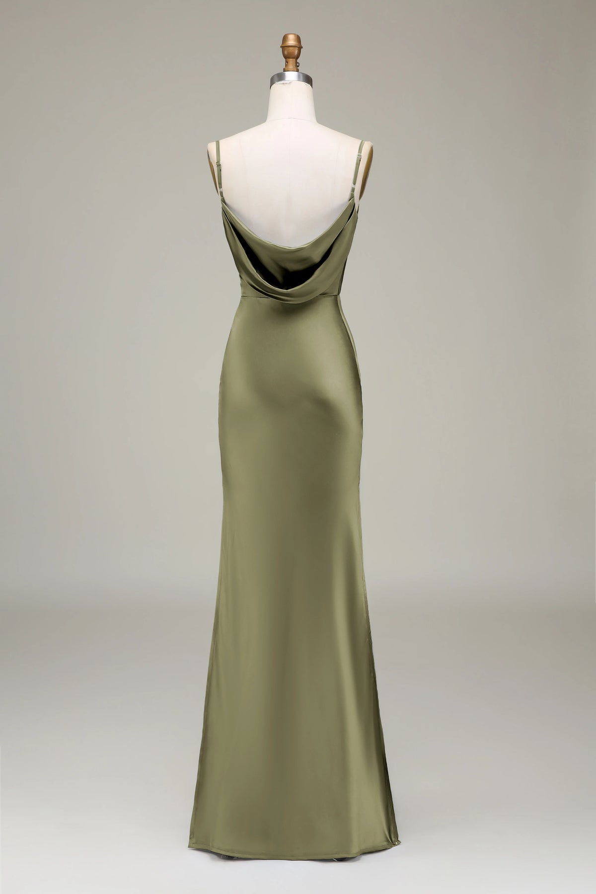 Sheath Spaghetti Straps Long Satin Bridesmaid Dress