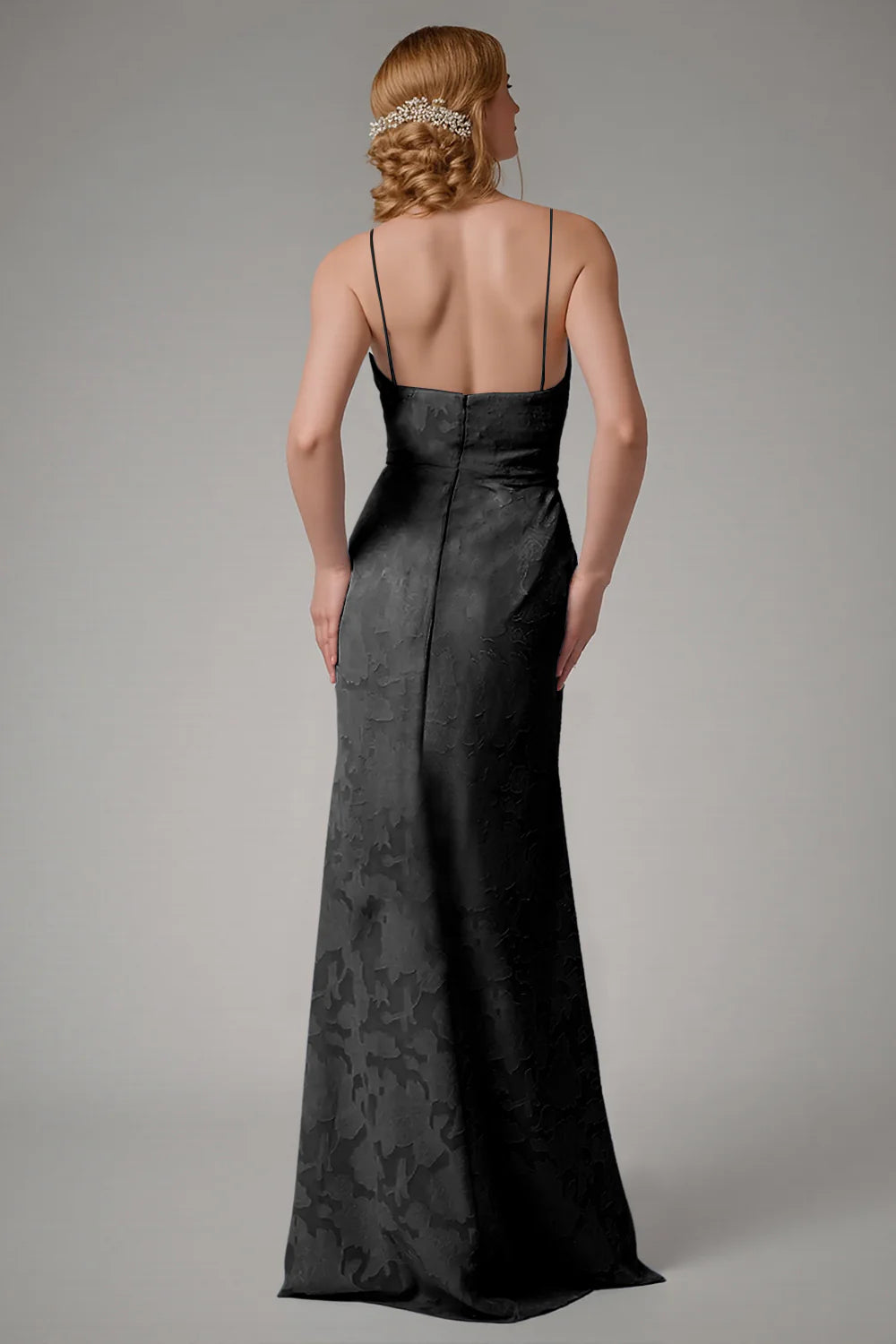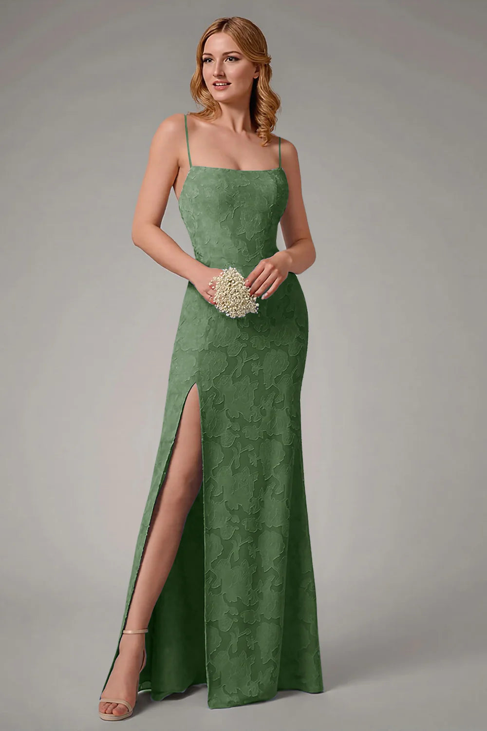 Square collar slim suspender backless waist cinching long skirt with side slit dress
