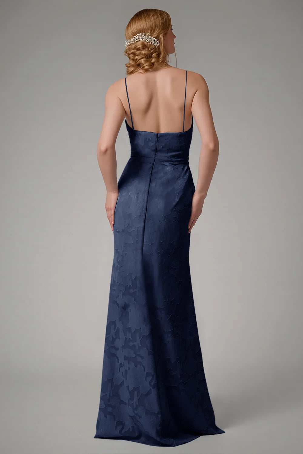 Square collar slim suspender backless waist cinching long skirt with side slit dress - Dusty Blue / US 2 / UK 6 / EU 32