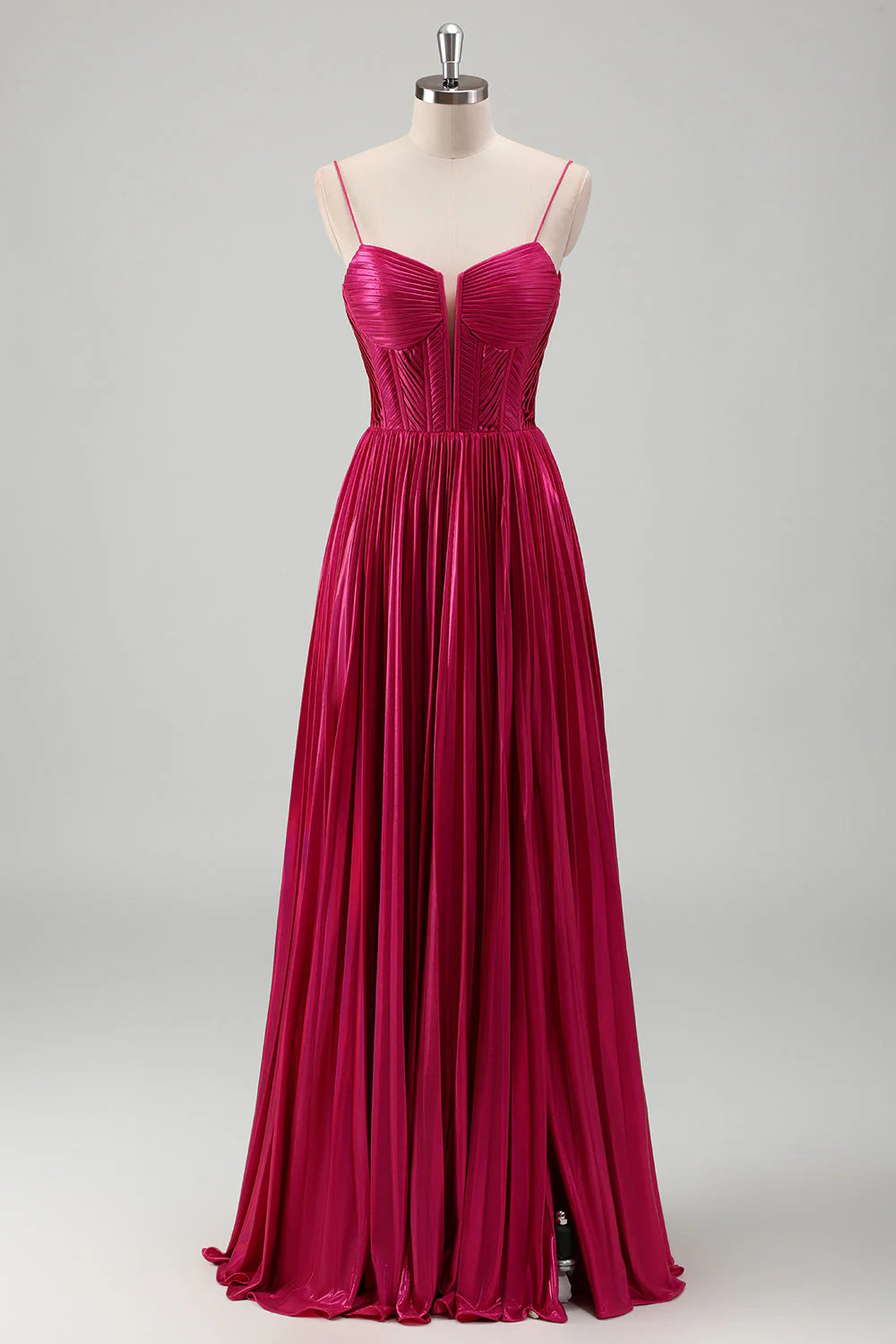 A-line slim suspender tight corset pleated metal ball dress with back straps