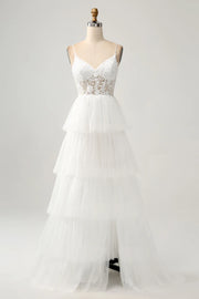 A-line thin suspender sheer tight corset with decal layered wedding dress