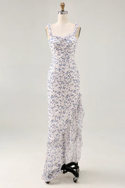 Blue Flower Sheath Chiffon Bridesmaid Dress with Ruffled Slit