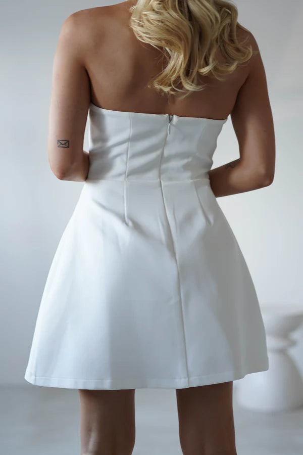 Sleeveless strapless waist cinching short skirt dress