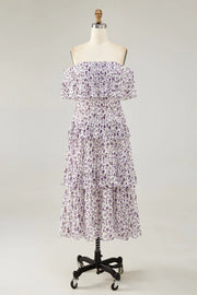 Purple Flower A-Line Off The Shoulder Chiffon Bridesmaid Dress with Ruffles - US 2 / UK 6 / EU 32