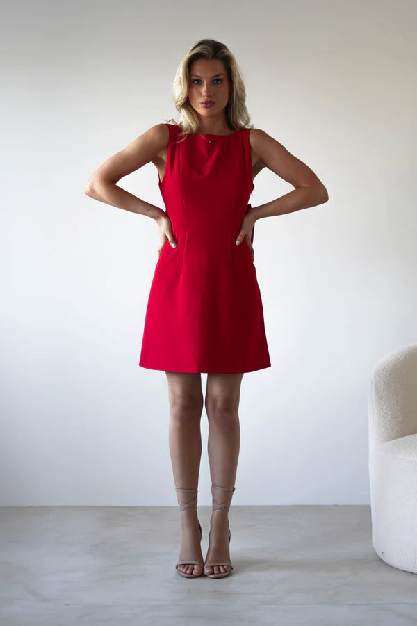 Round neck sleeveless backless short skirt with bow tie dress - US 2 / UK 6 / EU 32