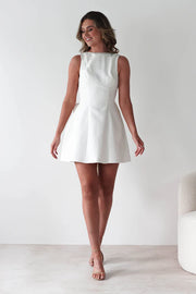 Sleeveless backless short skirt bow detachable dress - White / US 2 / UK 6 / EU 32