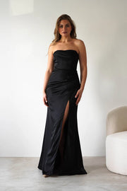 Strapless sleeveless waist cinching dress with side slit - Black / US 2 / UK 6 / EU 32