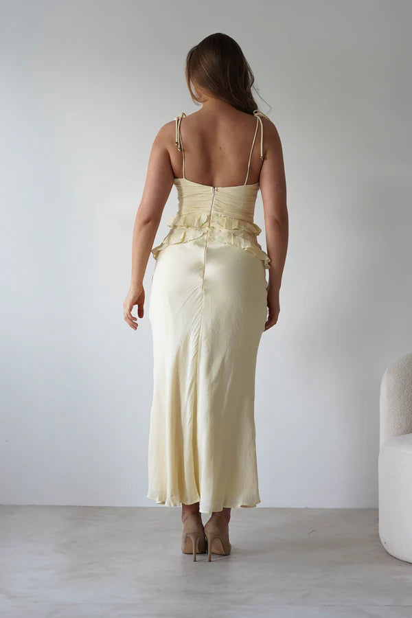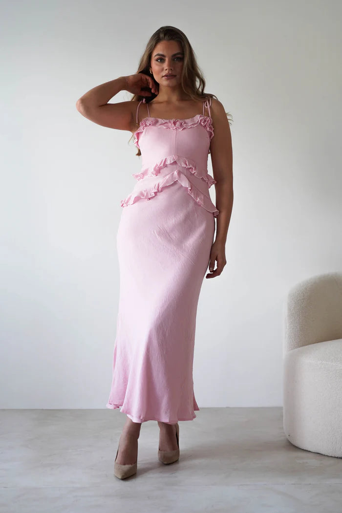 Thin suspender square collar waist cinching dress - Light pink / US 2 / UK 6 / EU 32