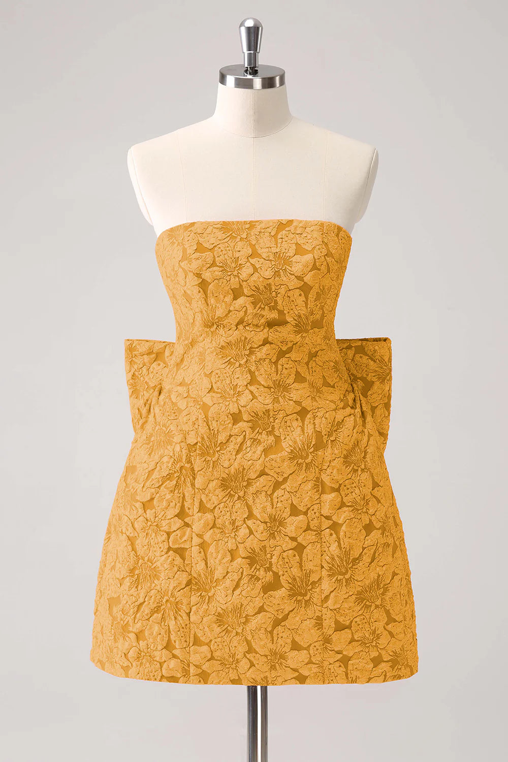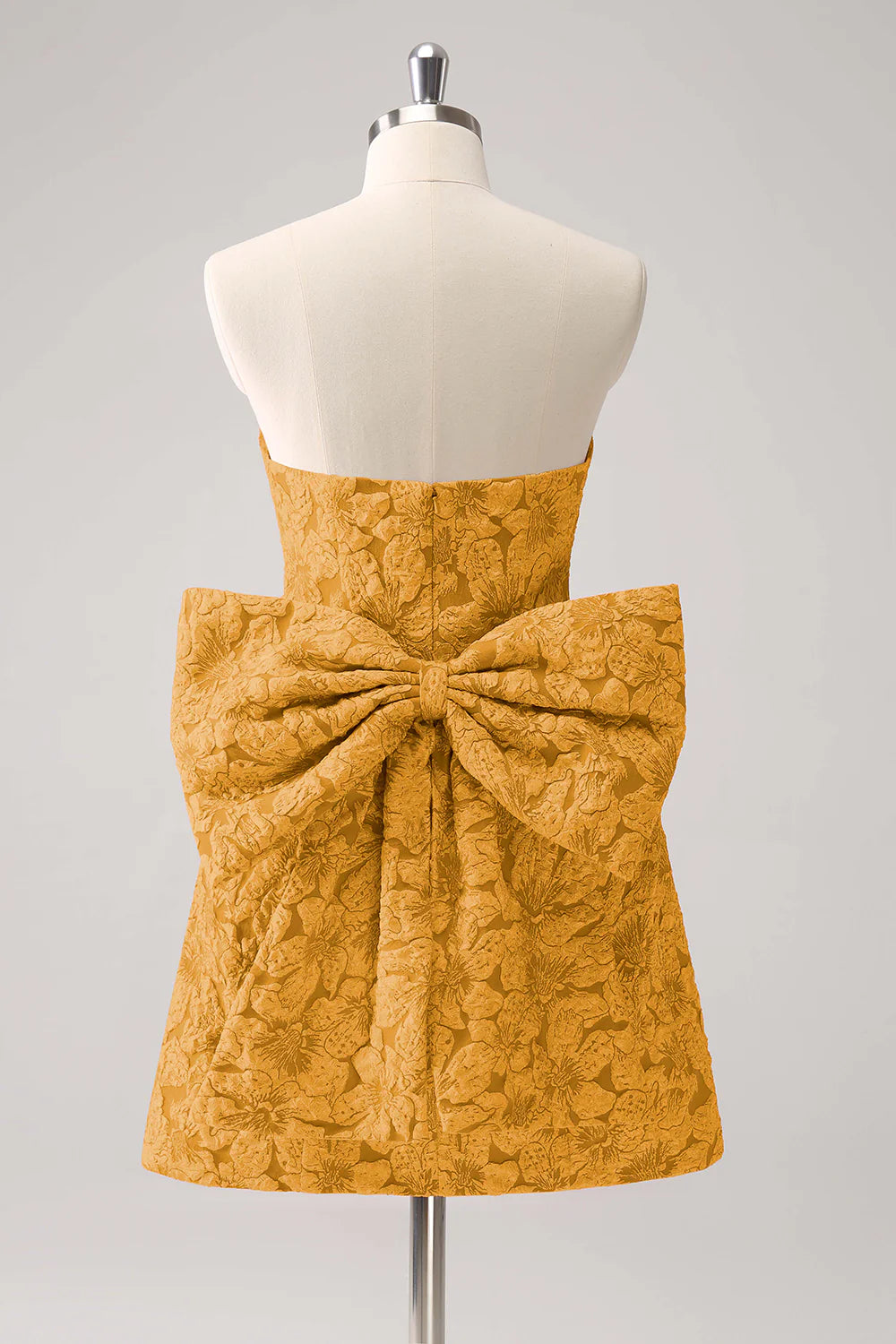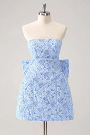 A-line strapless printed short bow back to school dress - Blue / US 2 / UK 6 / EU 32
