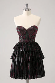 Cute Black Pink A Line Sweetheart Corset Metallic Homecoming Dress with Beading - US 2 / UK 6 / EU 32