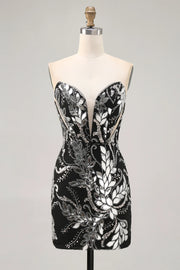 Sparkly Black Strapless Beaded Tight Short Homecoming Dress