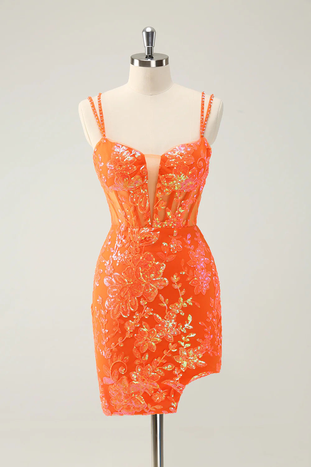 Glittler Royal Blue Spaghetti Straps Lace Up Short Homecoming Dress with Slit - Royal Blue / US 2 / UK 6 / EU 32