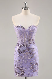 Purple Strapless Bodycon Corset Satin Short Homecoming Dress with Sequins
