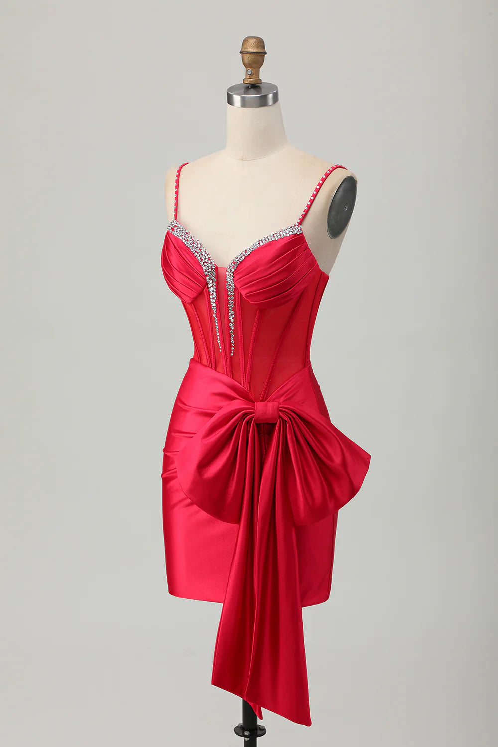 Red Bodycon Beaded Corset Satin Short Homecoming Dress with Bow