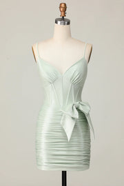 Sage Corset Ruched Tight Short Homecoming Dress with Bow