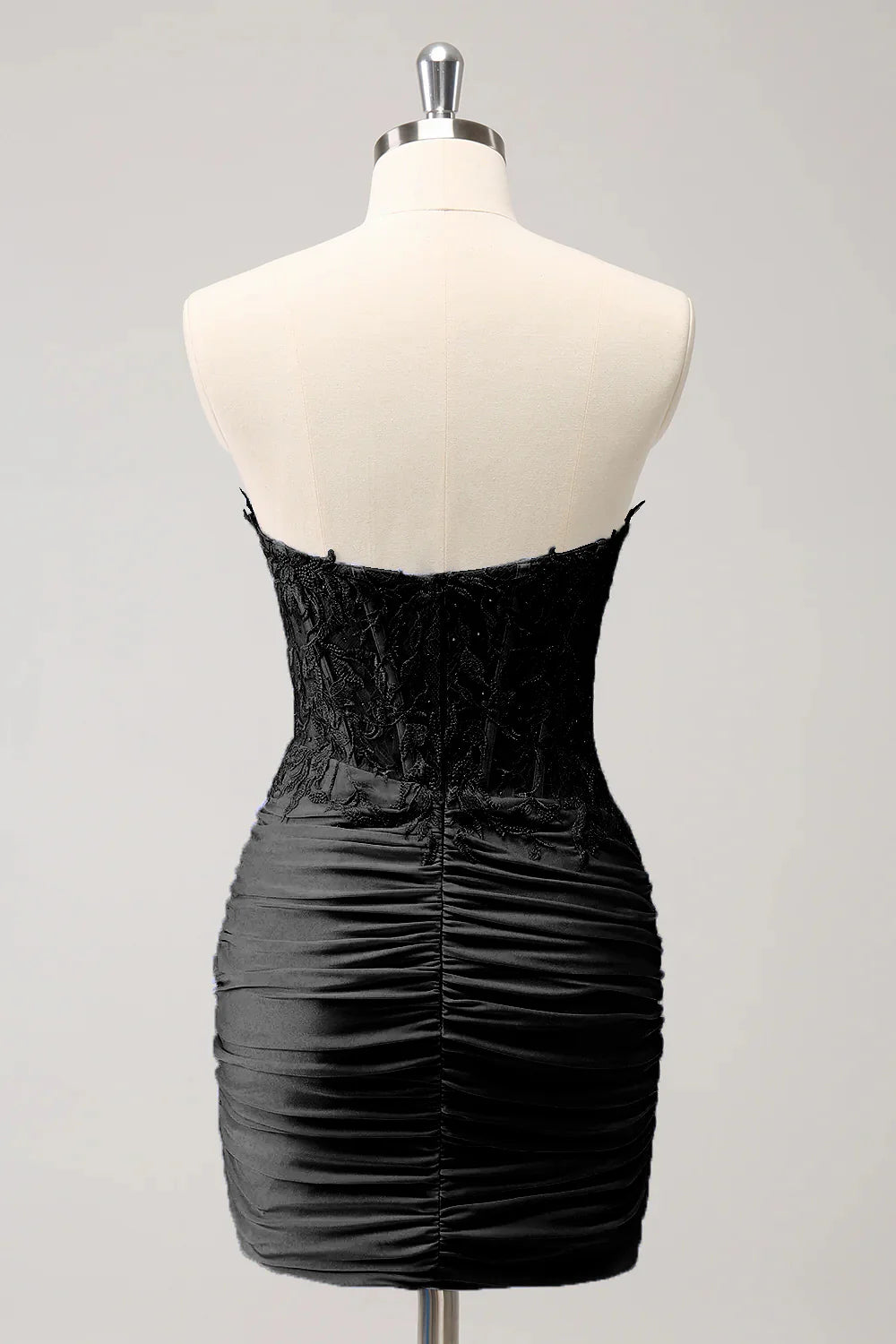 Sleeveless strapless tight fitting sweetheart corset with short pleats and beaded back to school dress