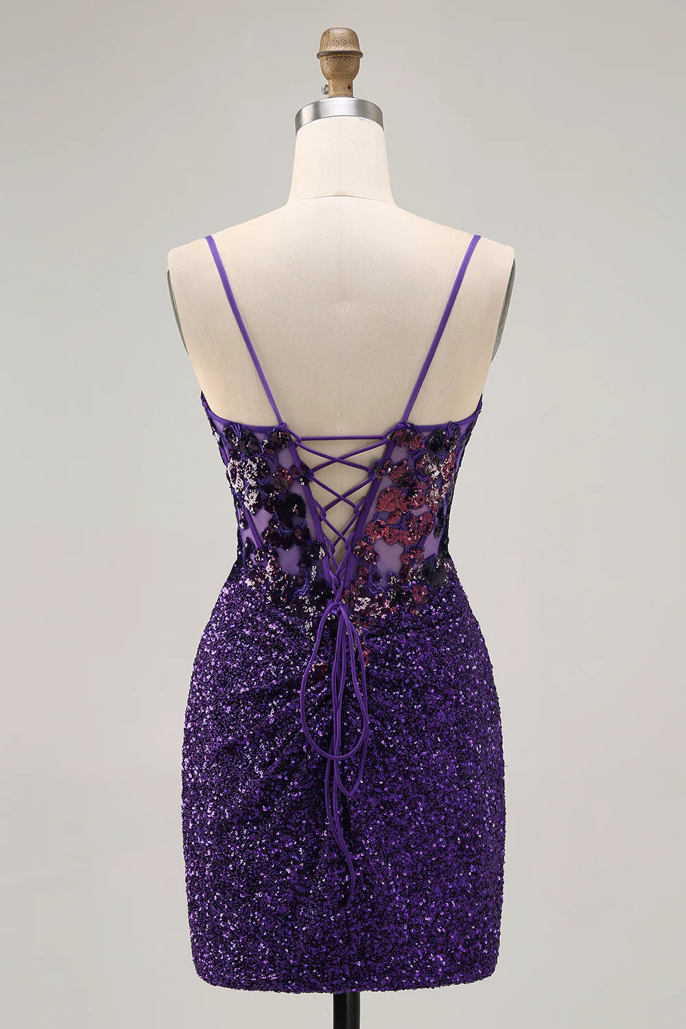 Sparkly Dark Purple Sequins Corset Bodycon Short Homecoming Dress