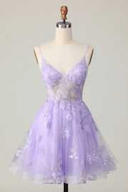Sparkly Purple A Line Sequins Floral Homecoming Dress