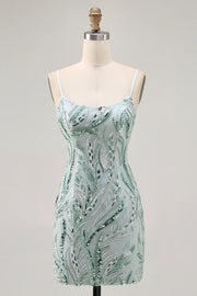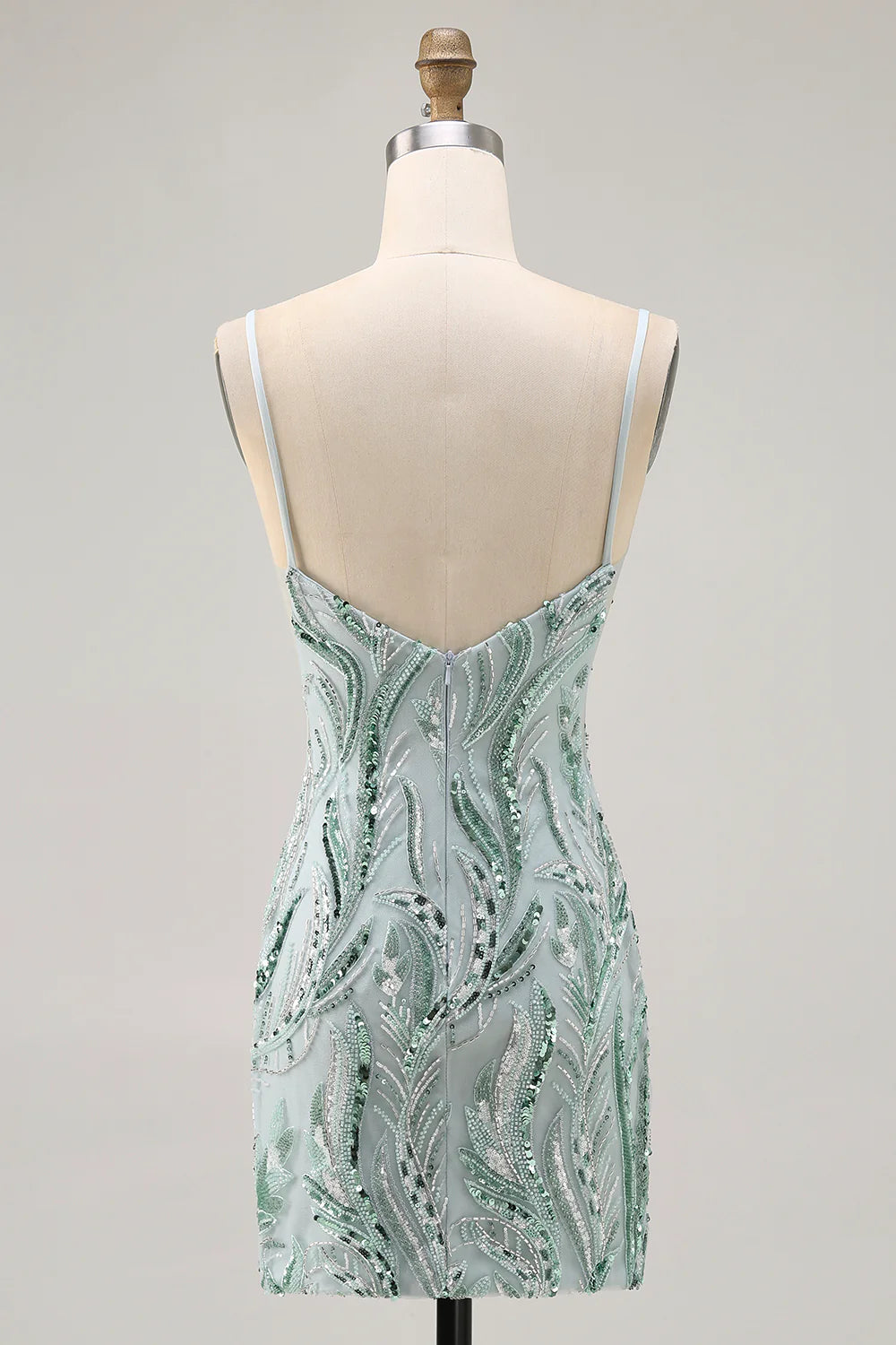 Sparkly Sequins Green Bodycon Short Homecoming Dress with beading