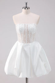 Sparkly White A Line Strapless Corset Short Homecoming Dress