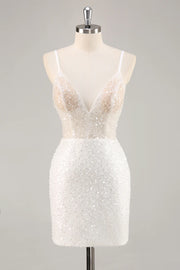 White Spaghetti Straps Tight Homecoming Dress With Sequins