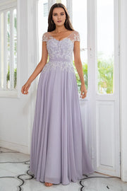 Elevate your evening look with this lilac maxi Mother of the Bride Dress. It features an illusion neckline, intricate beading on the bodice, and a flowing chiffon skirt. The combination of delicate detailing and soft fabric adds a touch of sophistication, making it perfect for formal events, weddings, or any occasion where you want to exude elegance and charm.