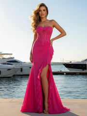 Vibrant Mermaid Sweetheart Sleeveless Ruffle-Side Floor-Length Prom Dresses