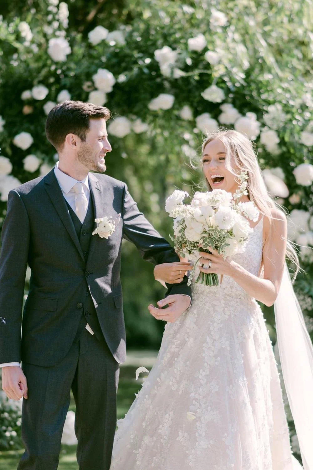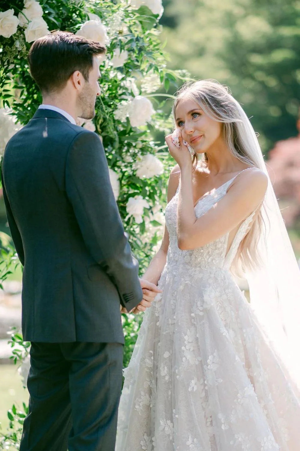 Gorgeous A Line V Neck White Long Bridal Dress with Appliques