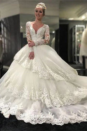 Gorgeous Deep V Neck Long Sleeves Lace Appliques Wedding Dresses
