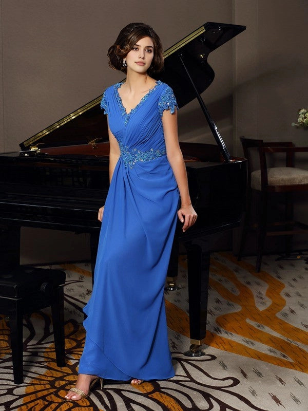 A-Line Chiffon V-neck Short Sleeves Floor-Length With Beading Mother of the Bride Dresses