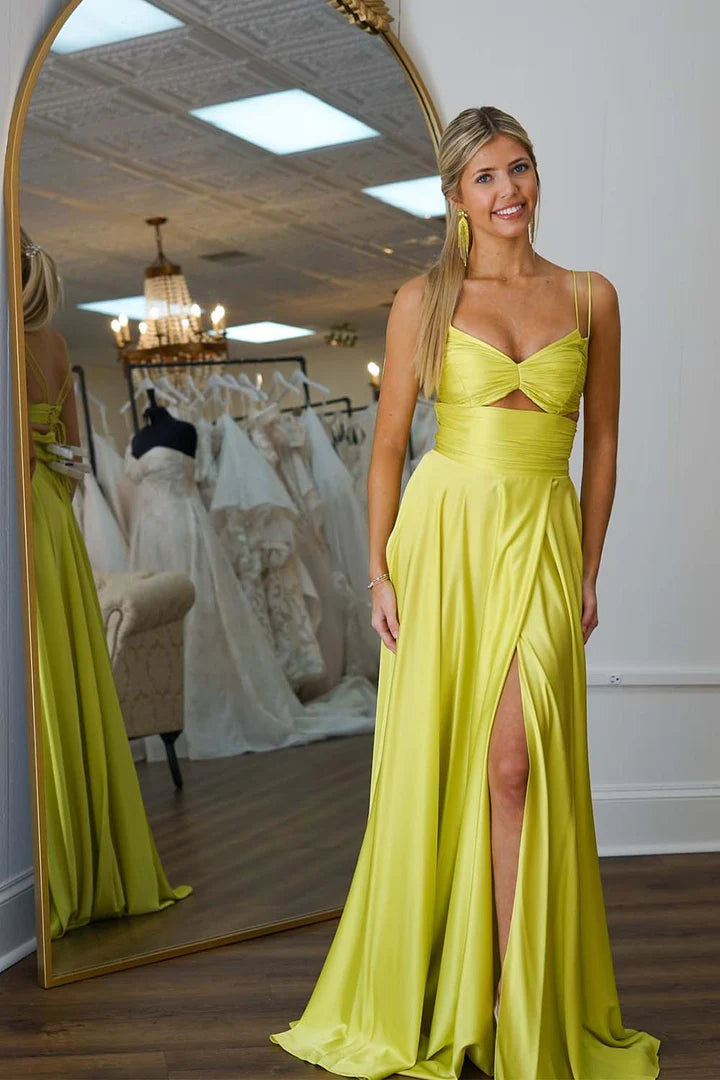 A-line slim shoulder strap V-neckline keyhole ball skirt with slit