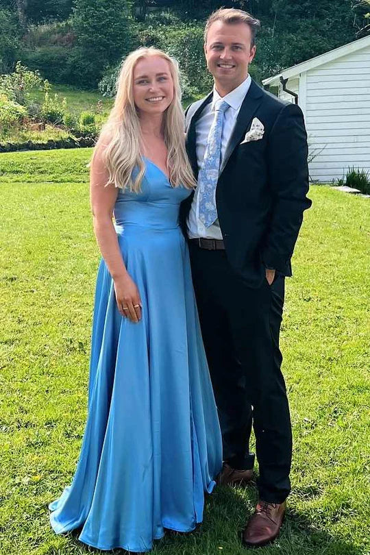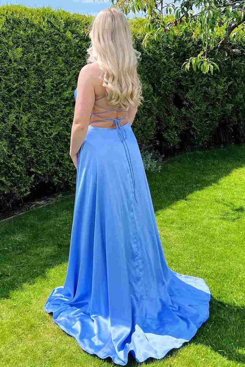 A-Line Spaghetti Straps Satin Lace-Up Pleated Long Prom Dress
