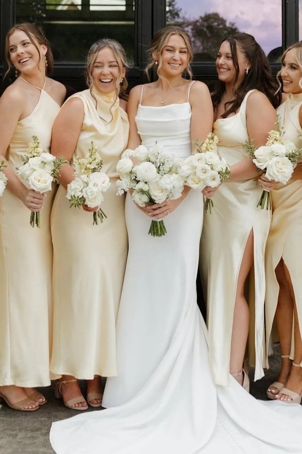 Beautiful Mermaid Spaghetti Straps White Long Wedding Dress with Ruched