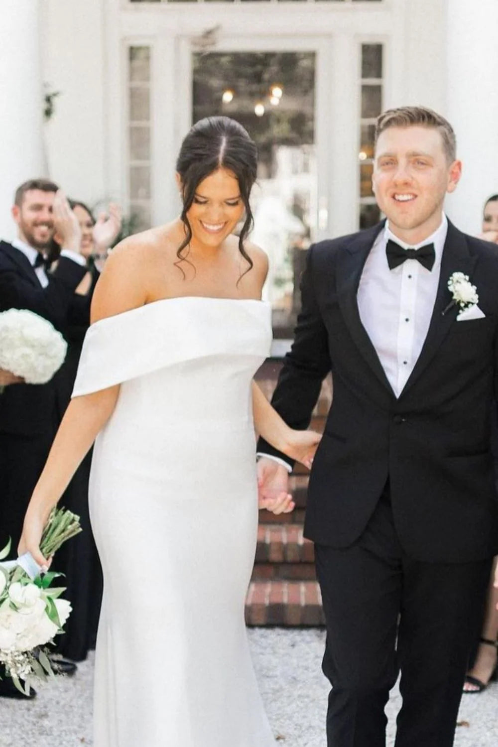 Charming Mermaid Off the Shoulder White Long Wedding Dress with Train
