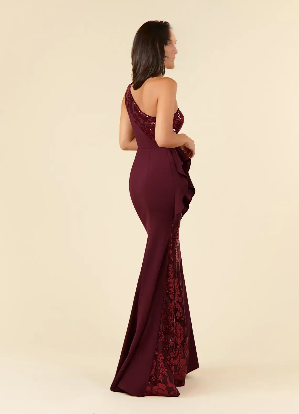 Elegantly designed for special occasions, this Charming Mermaid dress features intricate sequined lace that catches the light beautifully. Its one-shoulder, sleeveless silhouette enhances femininity while the side zipper ensures a seamless fit. The floor-length mermaid shape contours the body, offering a flattering and sophisticated look perfect for mothers of the bride. Crafted to combine comfort and style, this dress makes a lasting impression at any formal event.