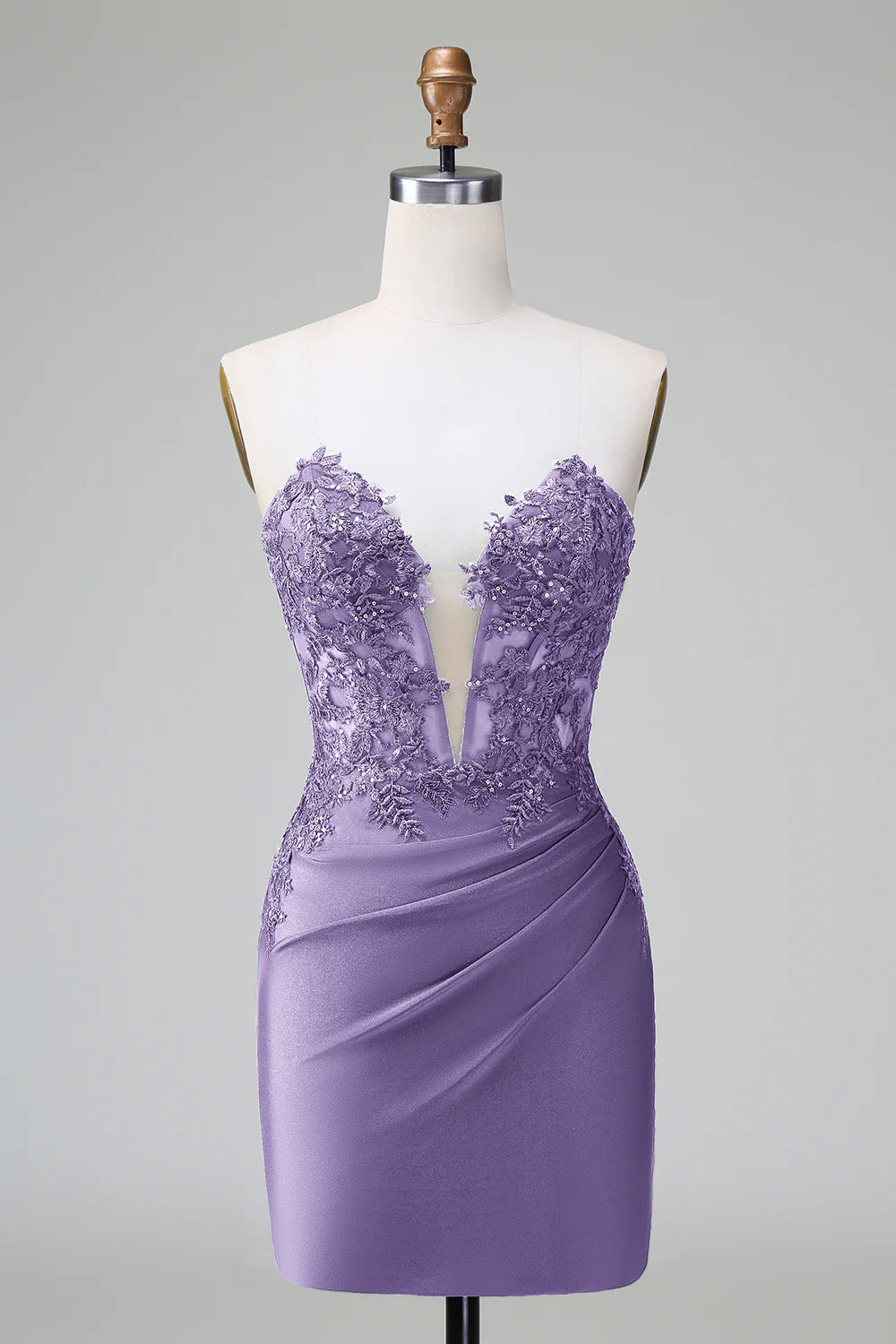Classy Dark Green Bodycon Strapless Pleated Short Homecoming Dress with Beading