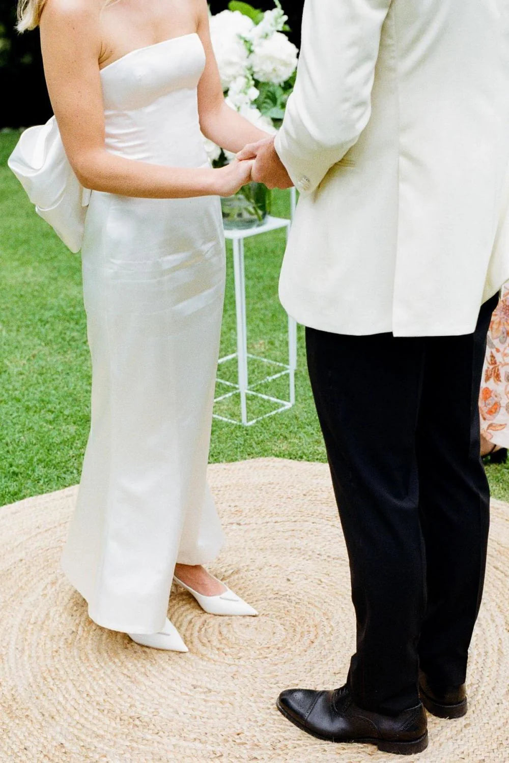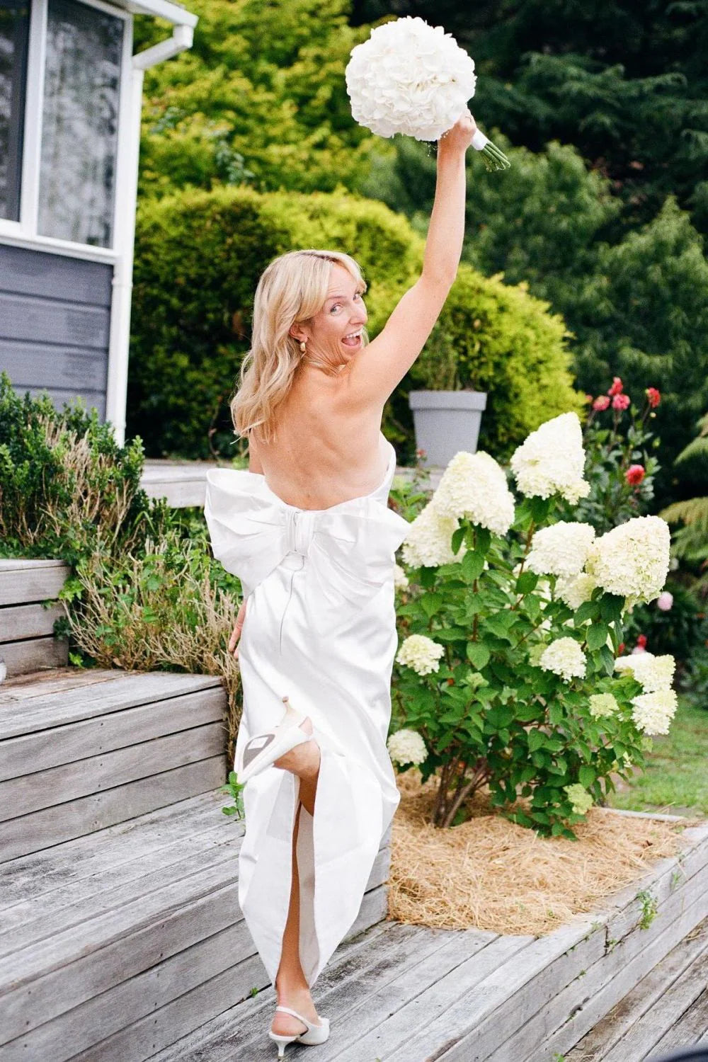 Cute Mermaid Strapless White Satin Floor Length Wedding Dress with Bowknot