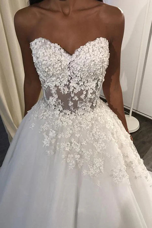 Elegant Sweetheart Strapless A Line With Lace Appliques Ball Gown Wedding Dresses