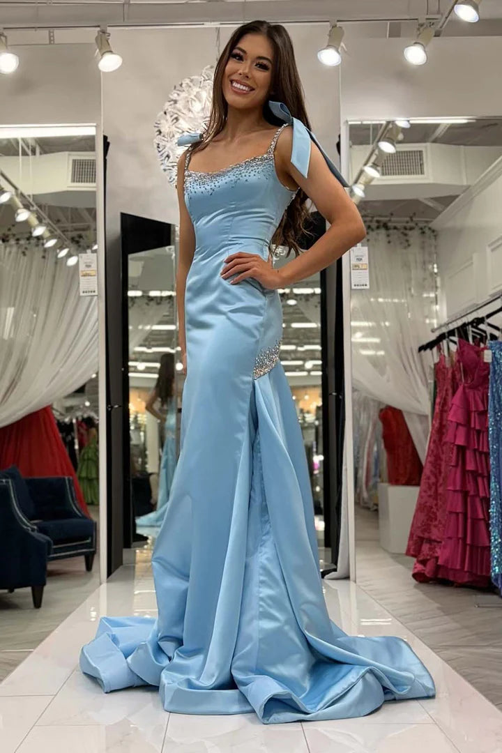 Fitted Prom Dress with Straps Bows