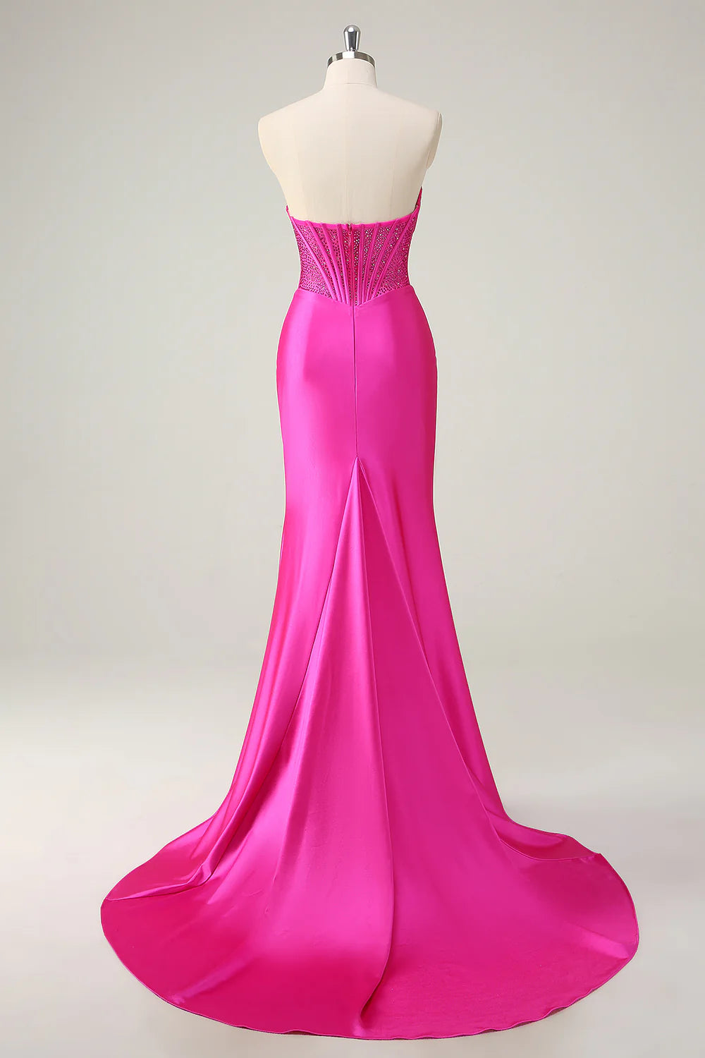 Fuchsia Mermaid Strapless Corset Ruched Long Prom Dress with Beading