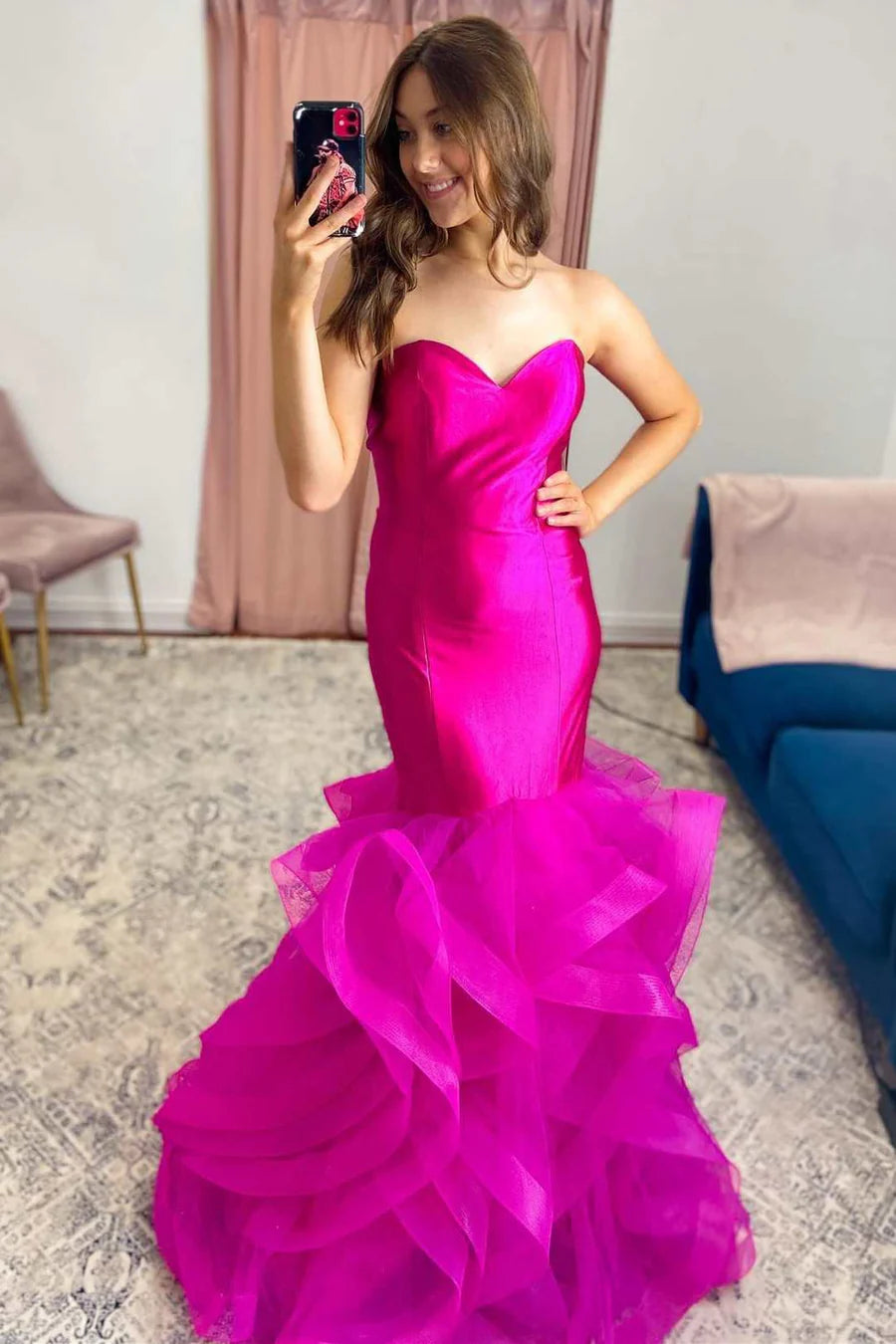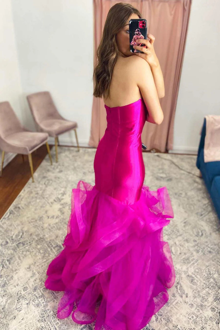 Fuchsia Strapless Layers Trumpet Long Formal Gown