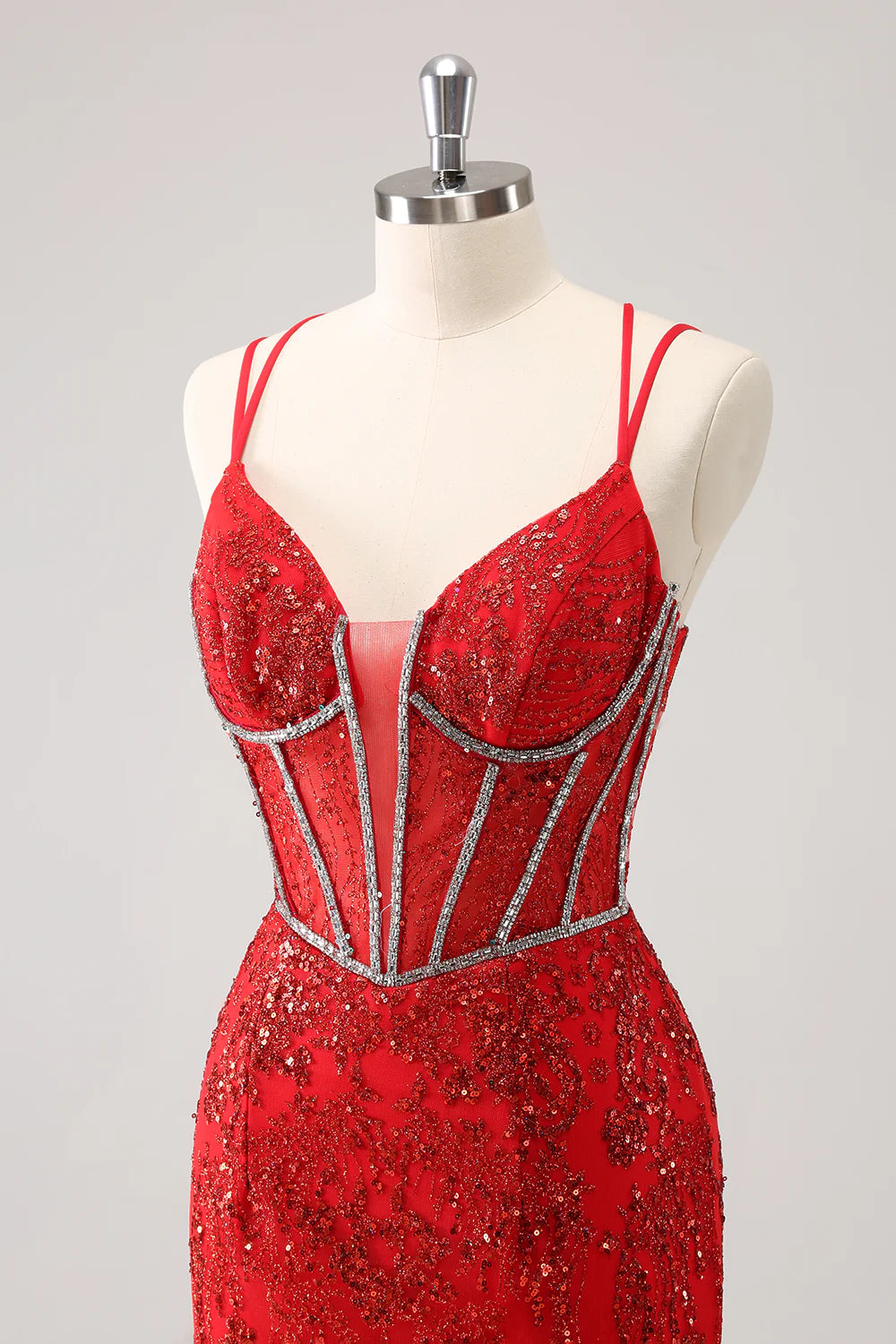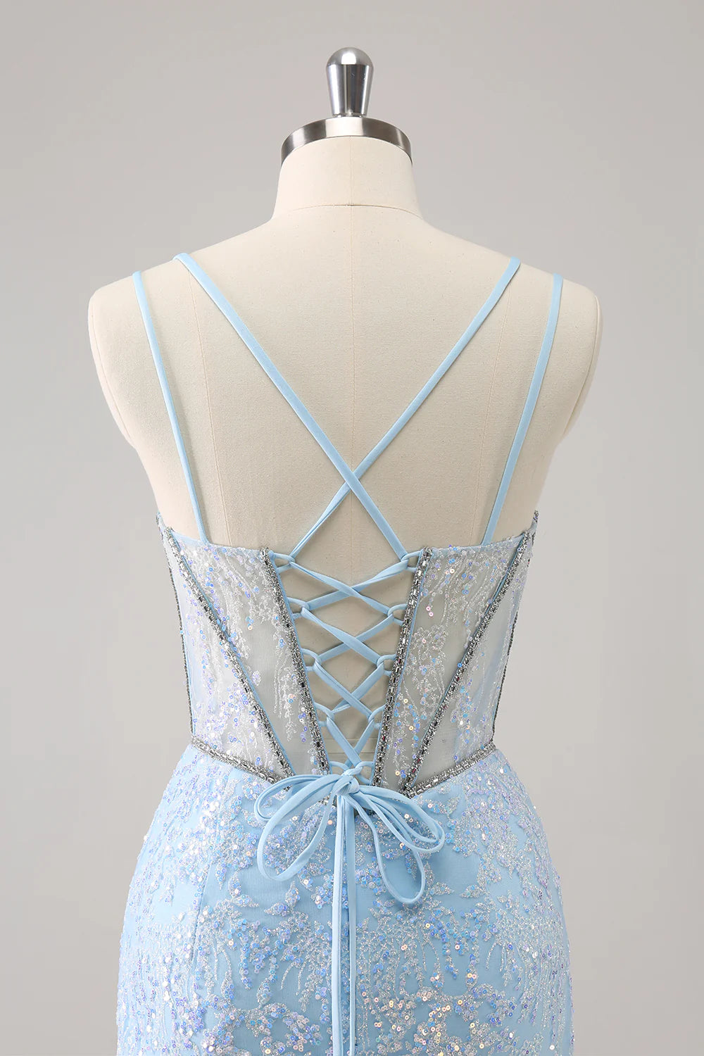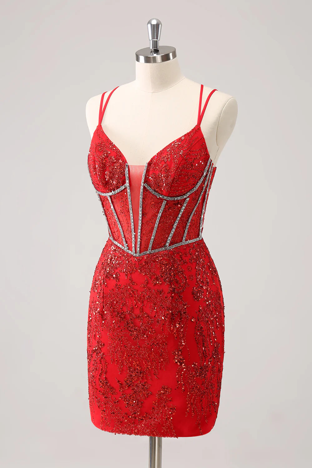 Glitter Dark Green Corset Spaghetti Straps Short Tight Homecoming Dresses