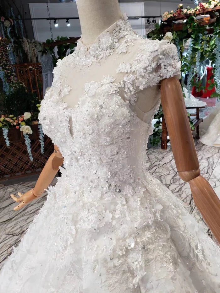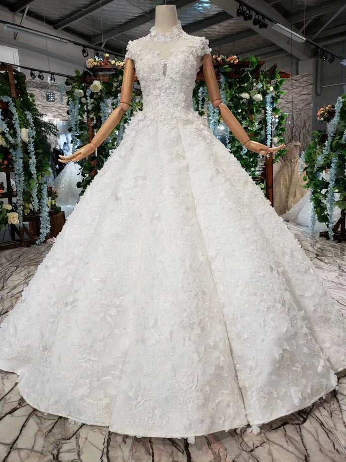 Gorgeous High Neck Ball Gown Cap Sleeves Wedding Dresses with Beading